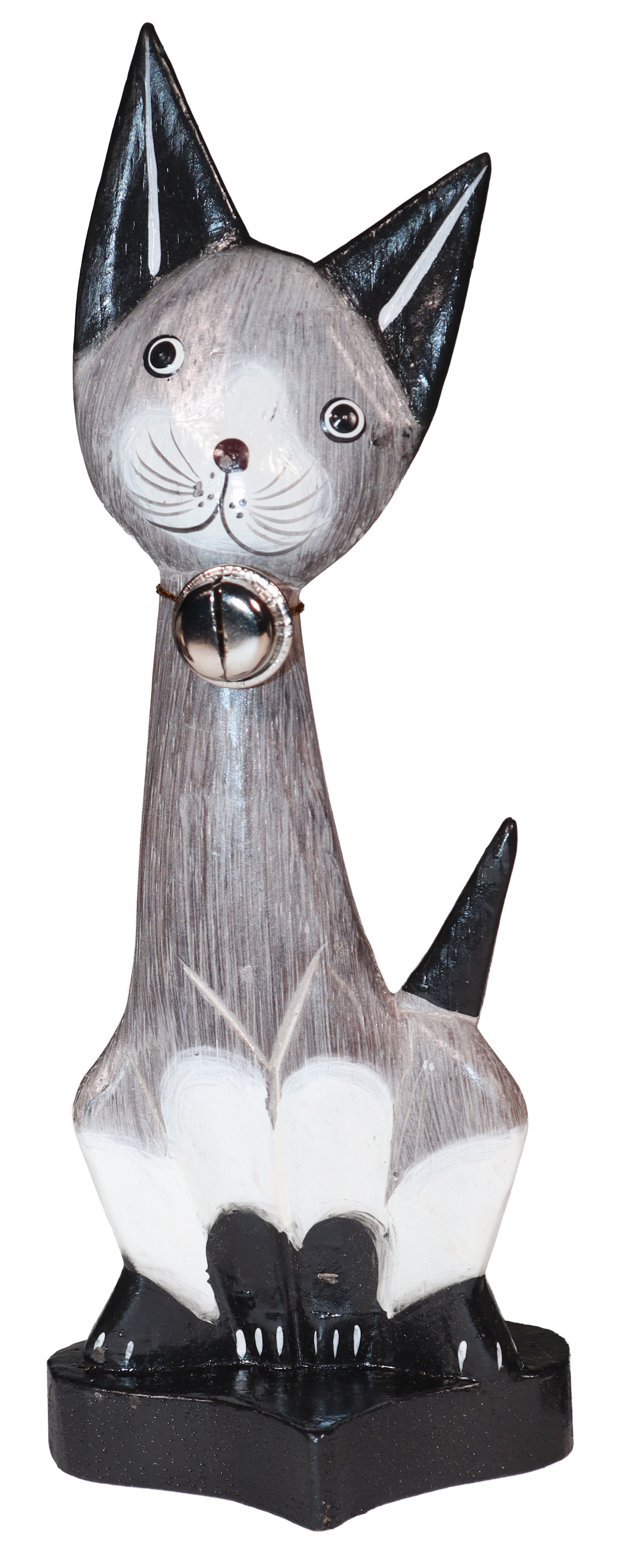 Kot wykonany z drewna, ręcznie malowany, import z Indonezji (Bali).