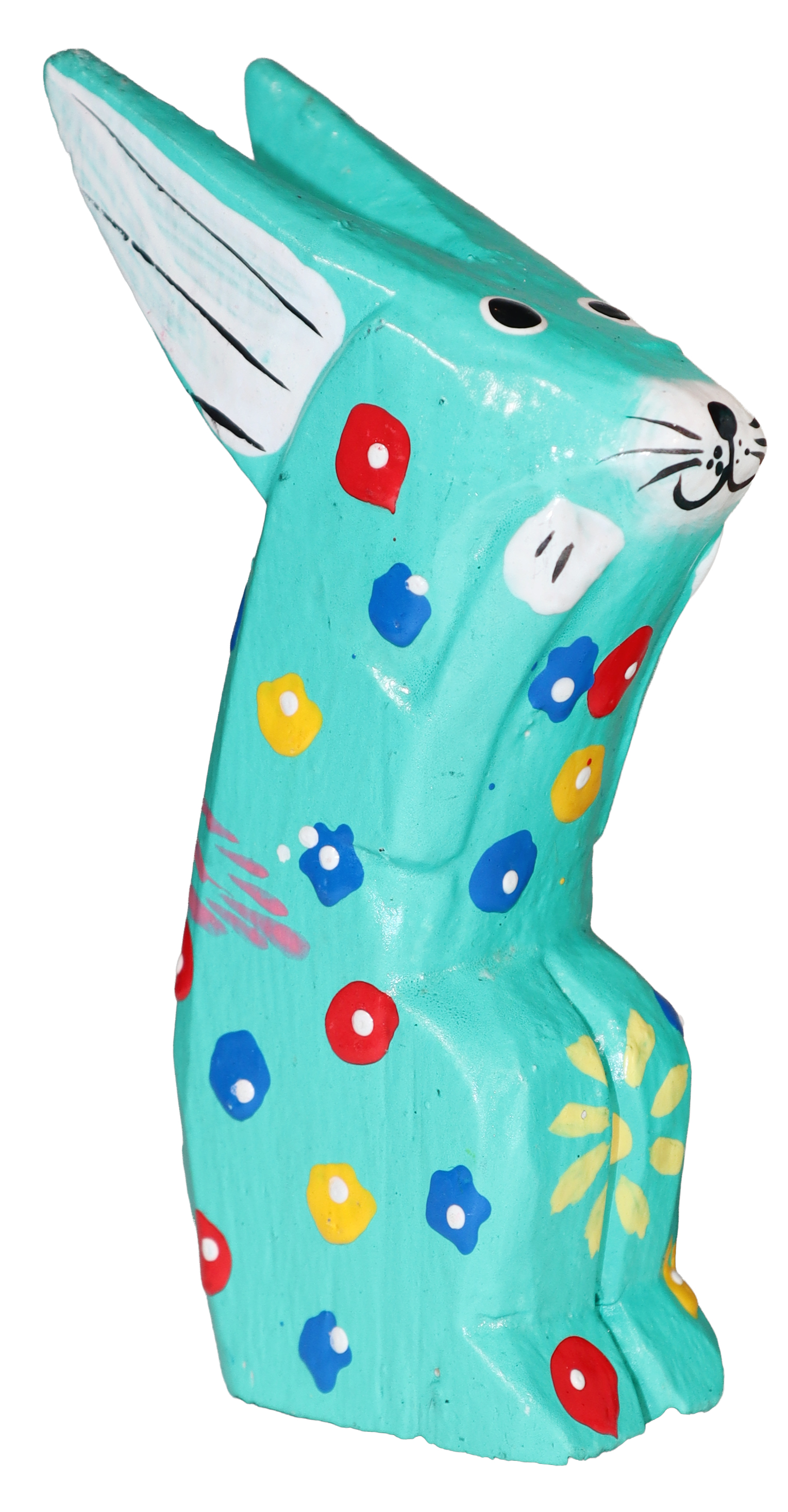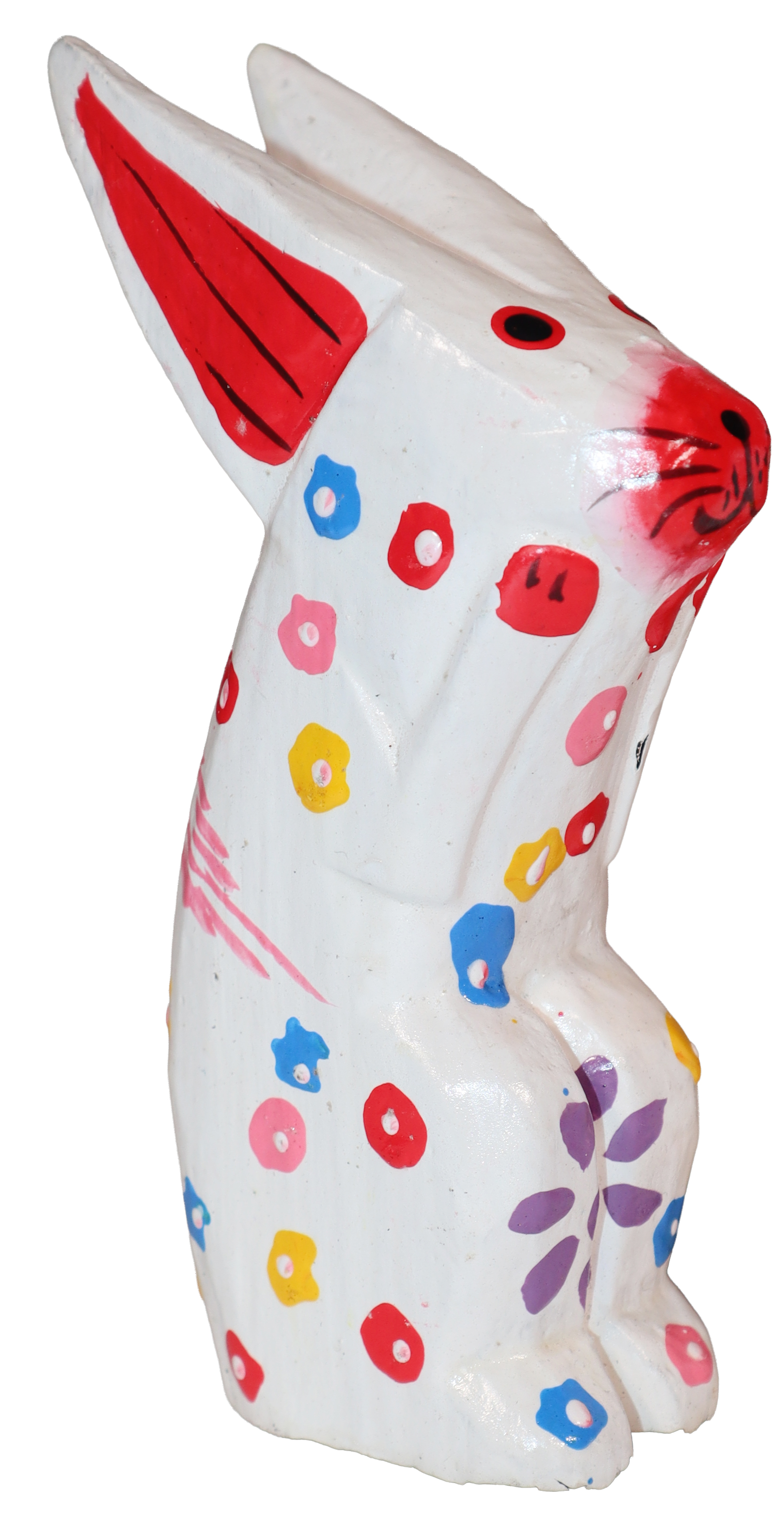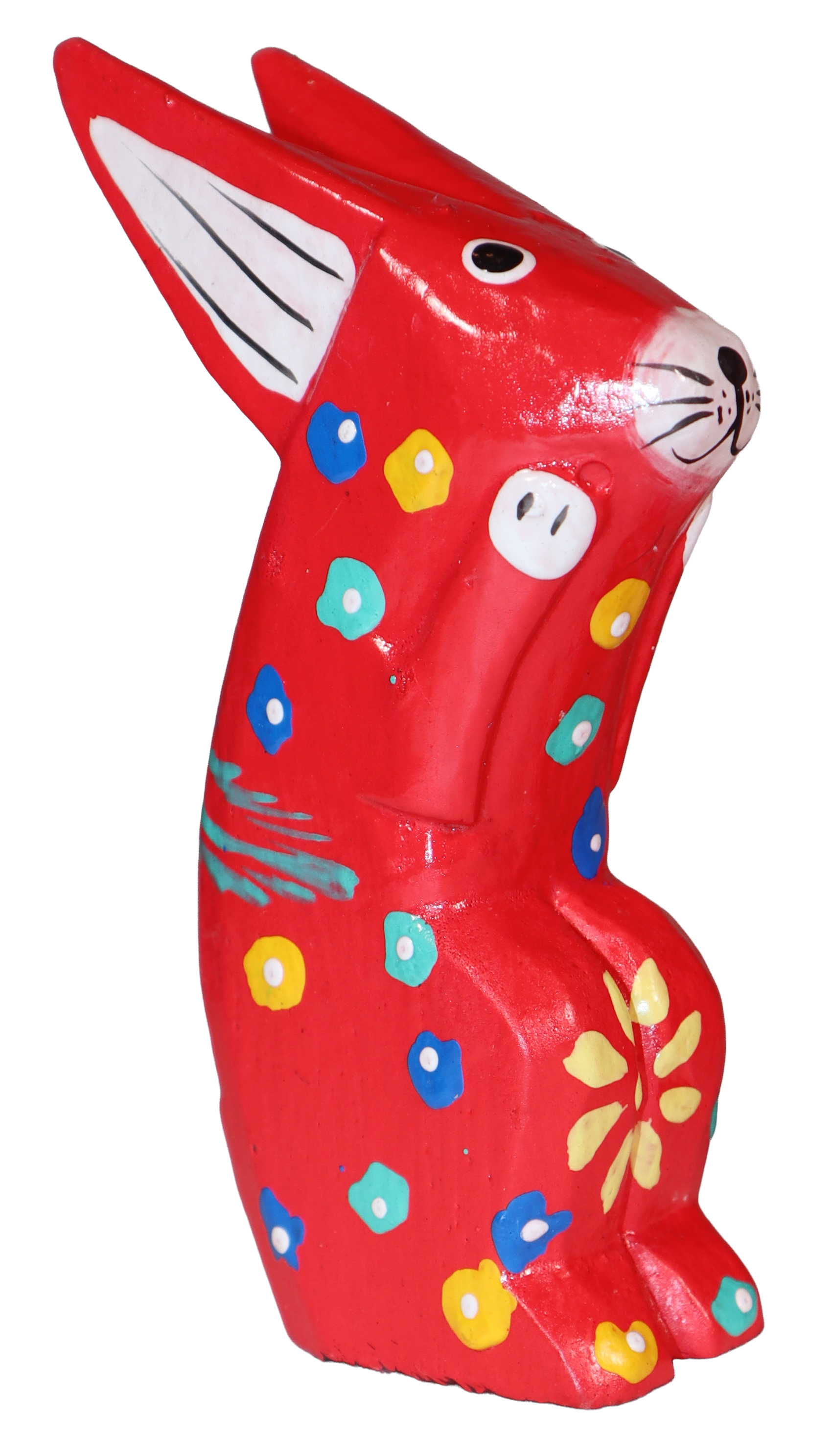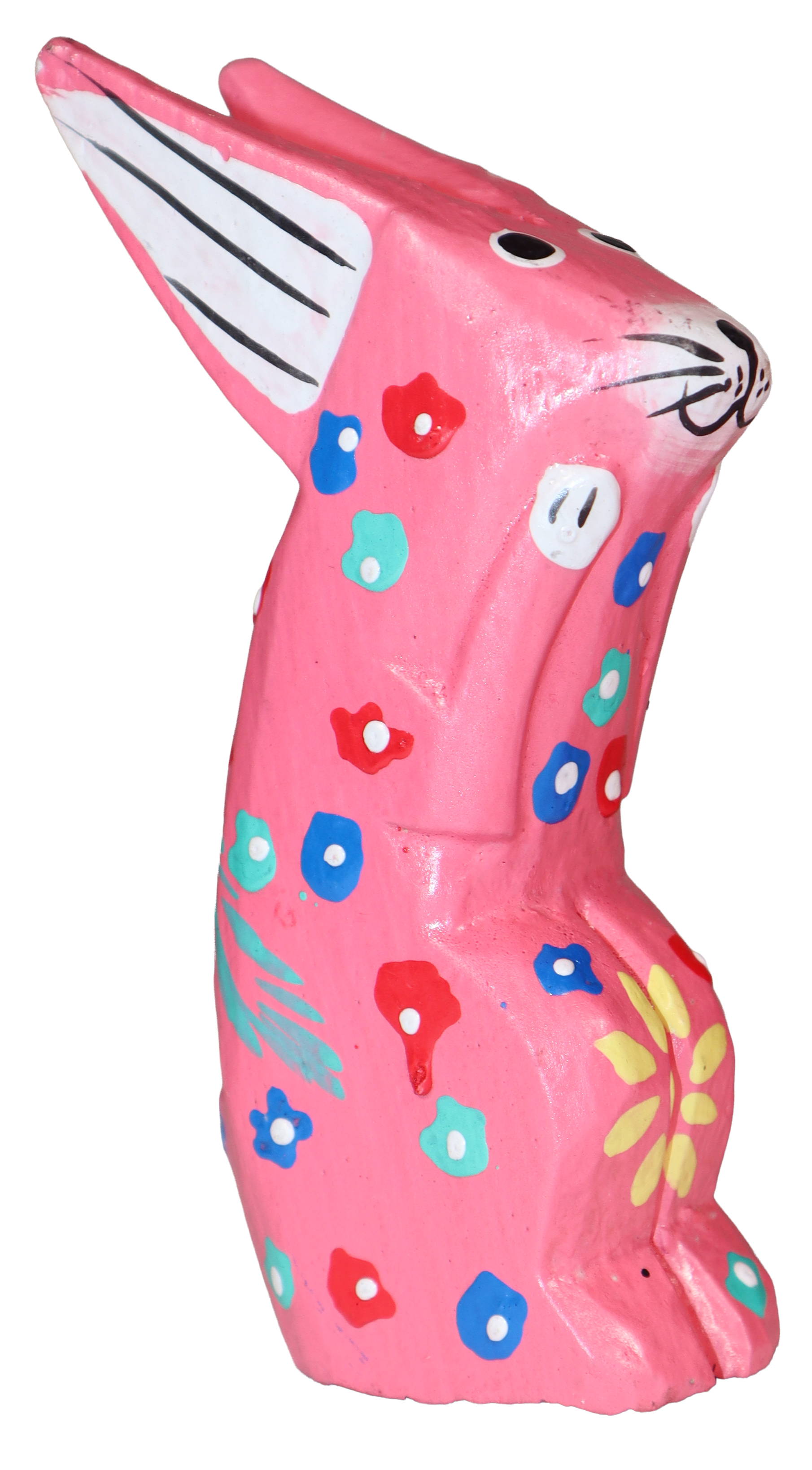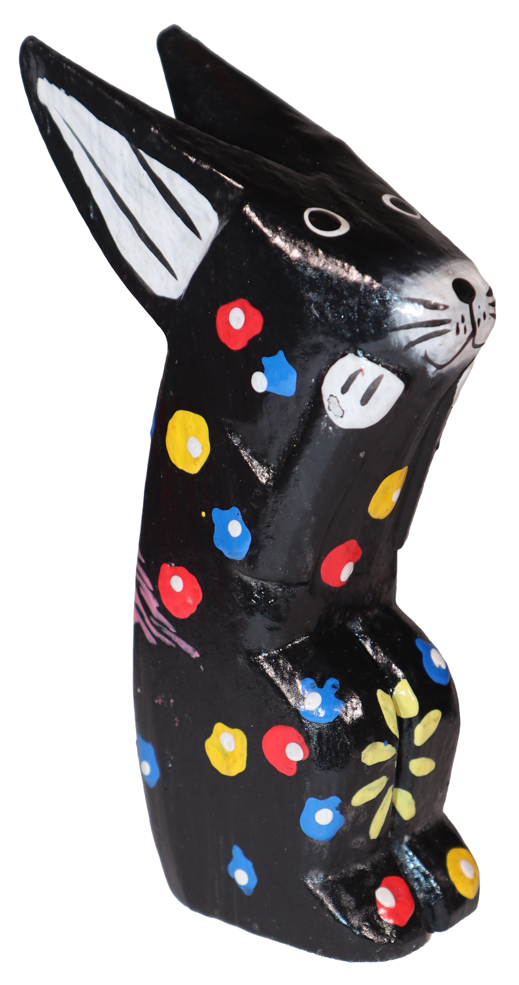Królik wykonany z drewna, rękodzieło importowane z Indonezji (Bali).