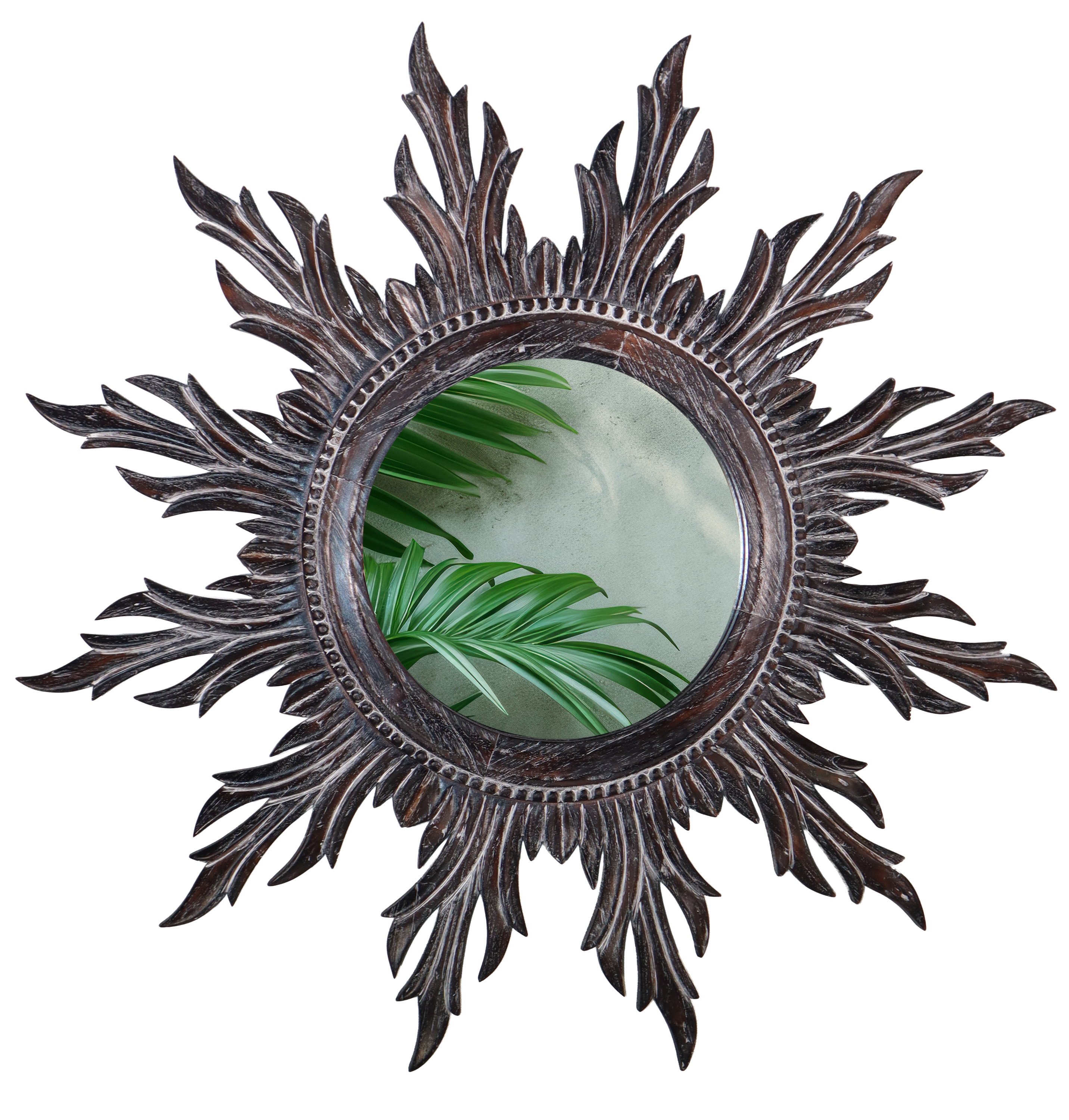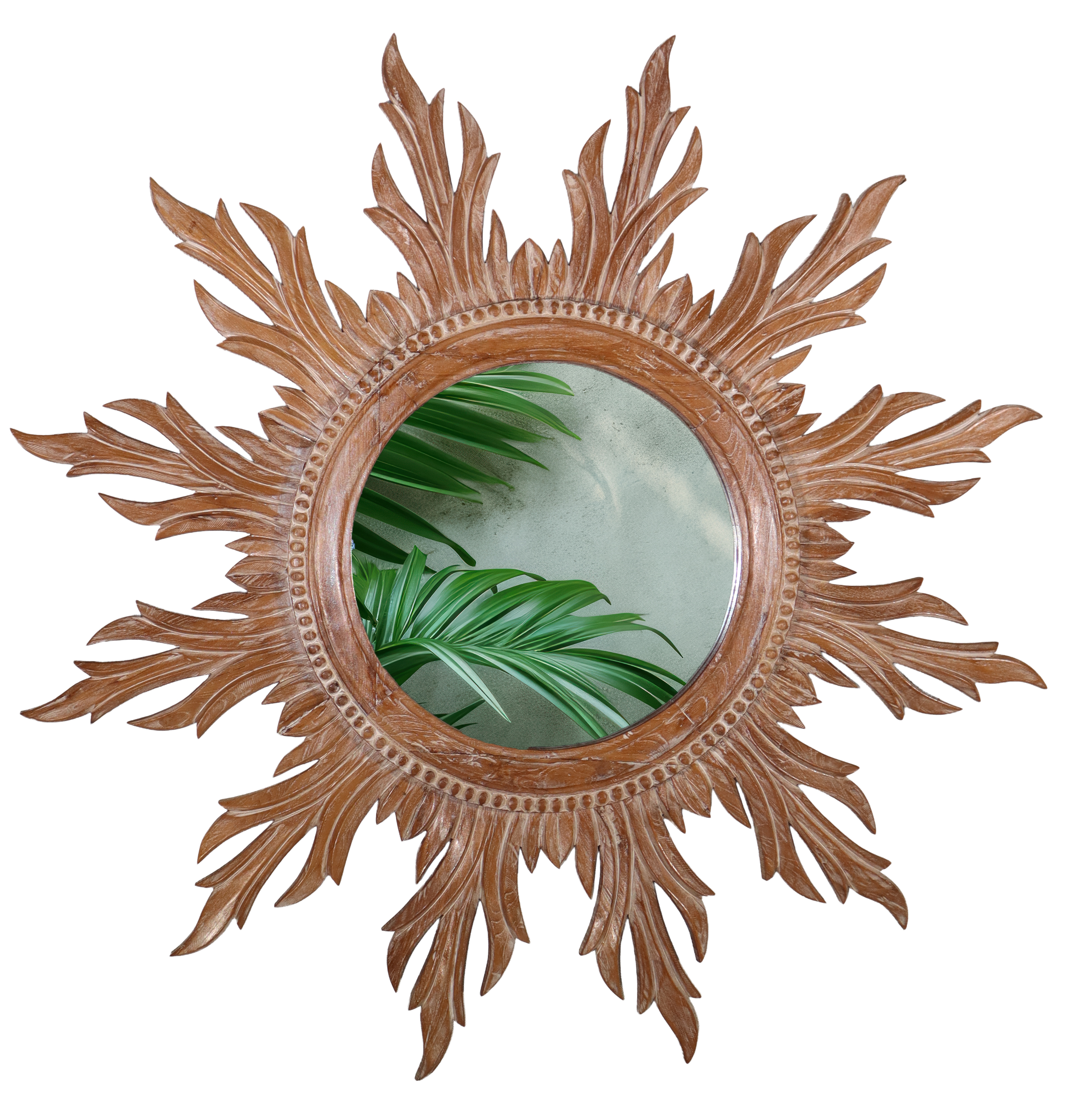 Lustro w ramie wykonanej z drewna, rękodzieło importowane z Indonezji (Bali).