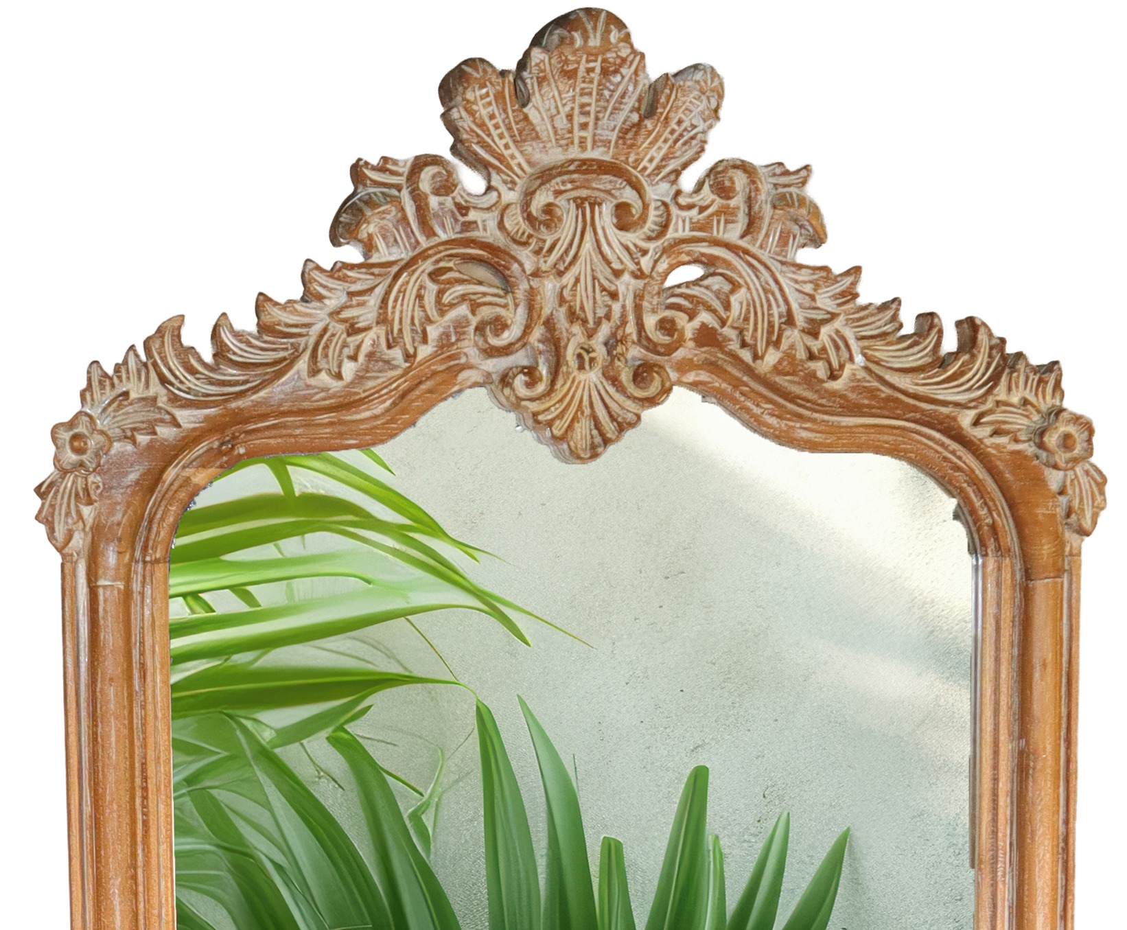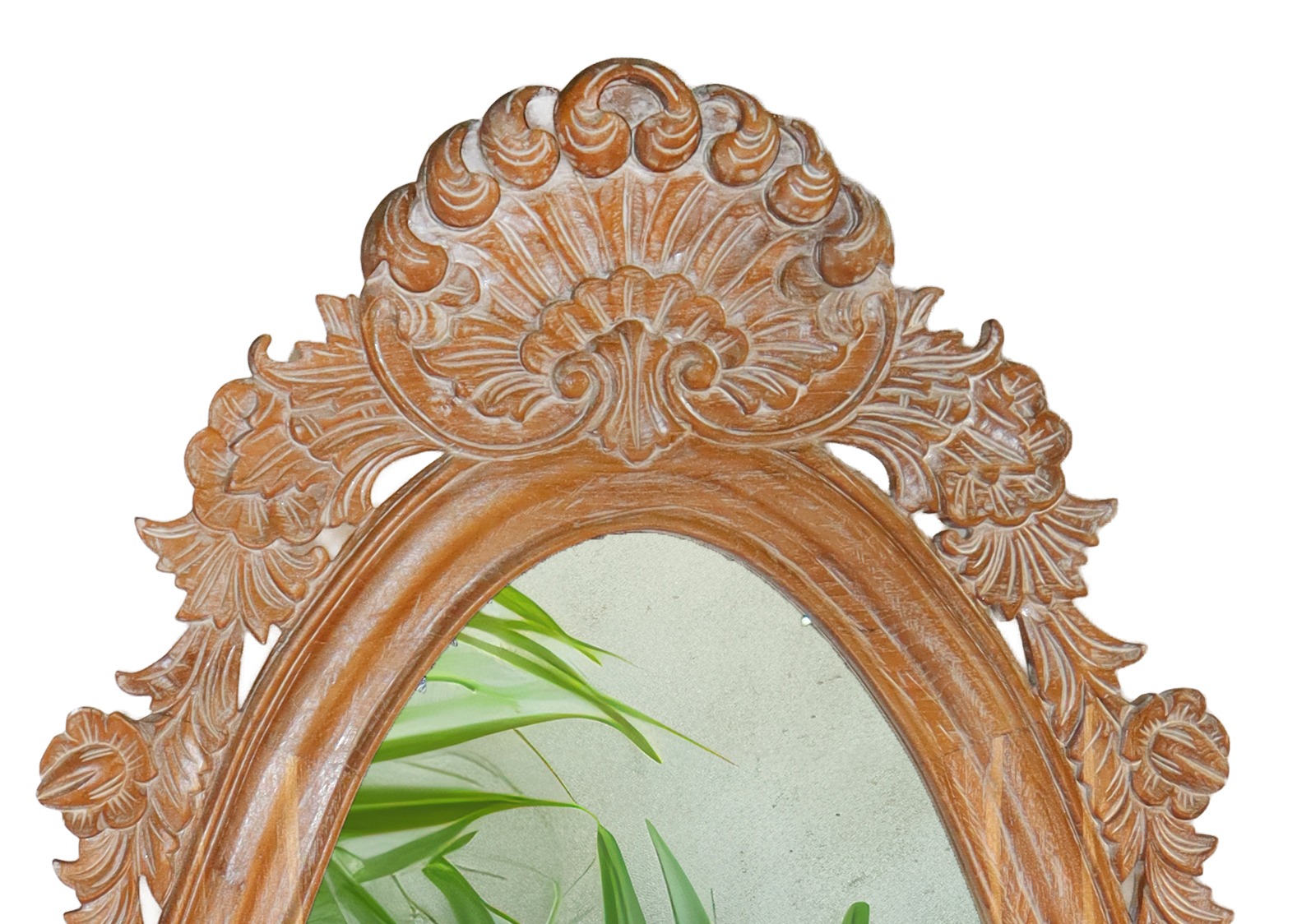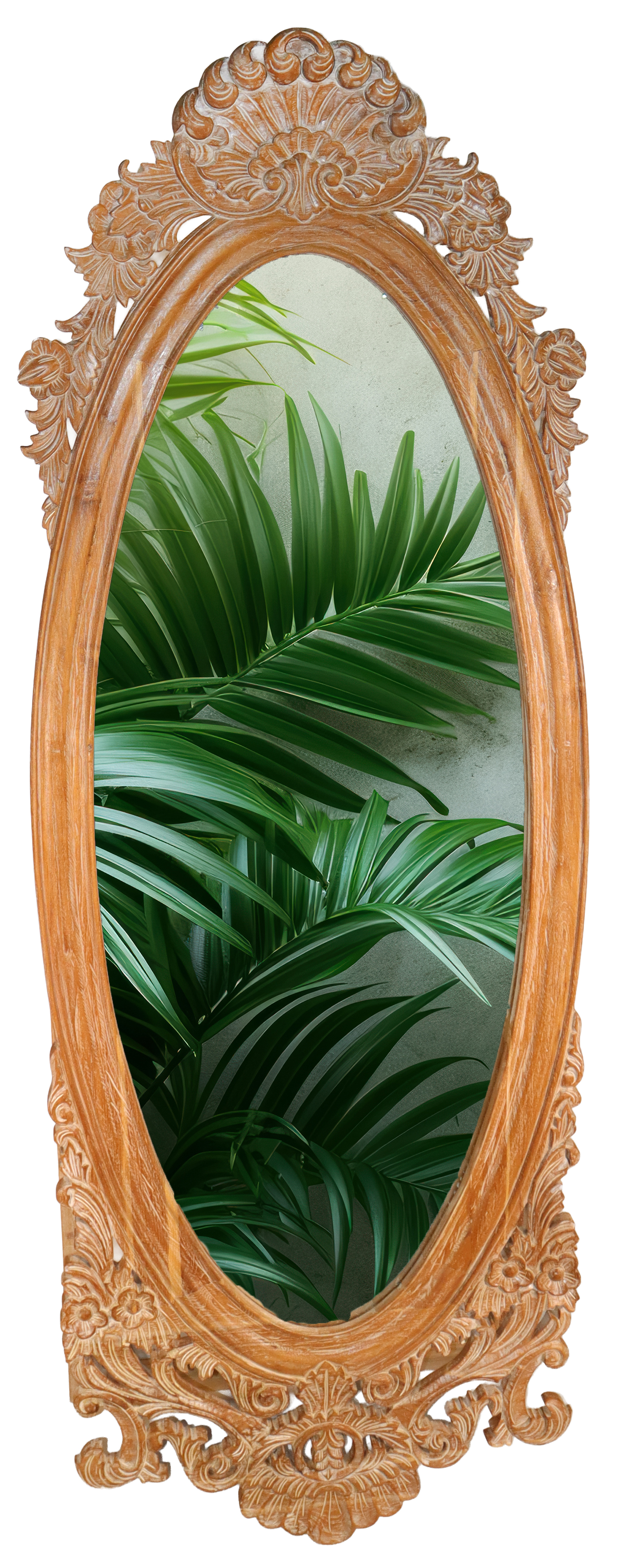 Lustro w ramie wykonanej z drewna, rękodzieło importowane z Indonezji (Bali).