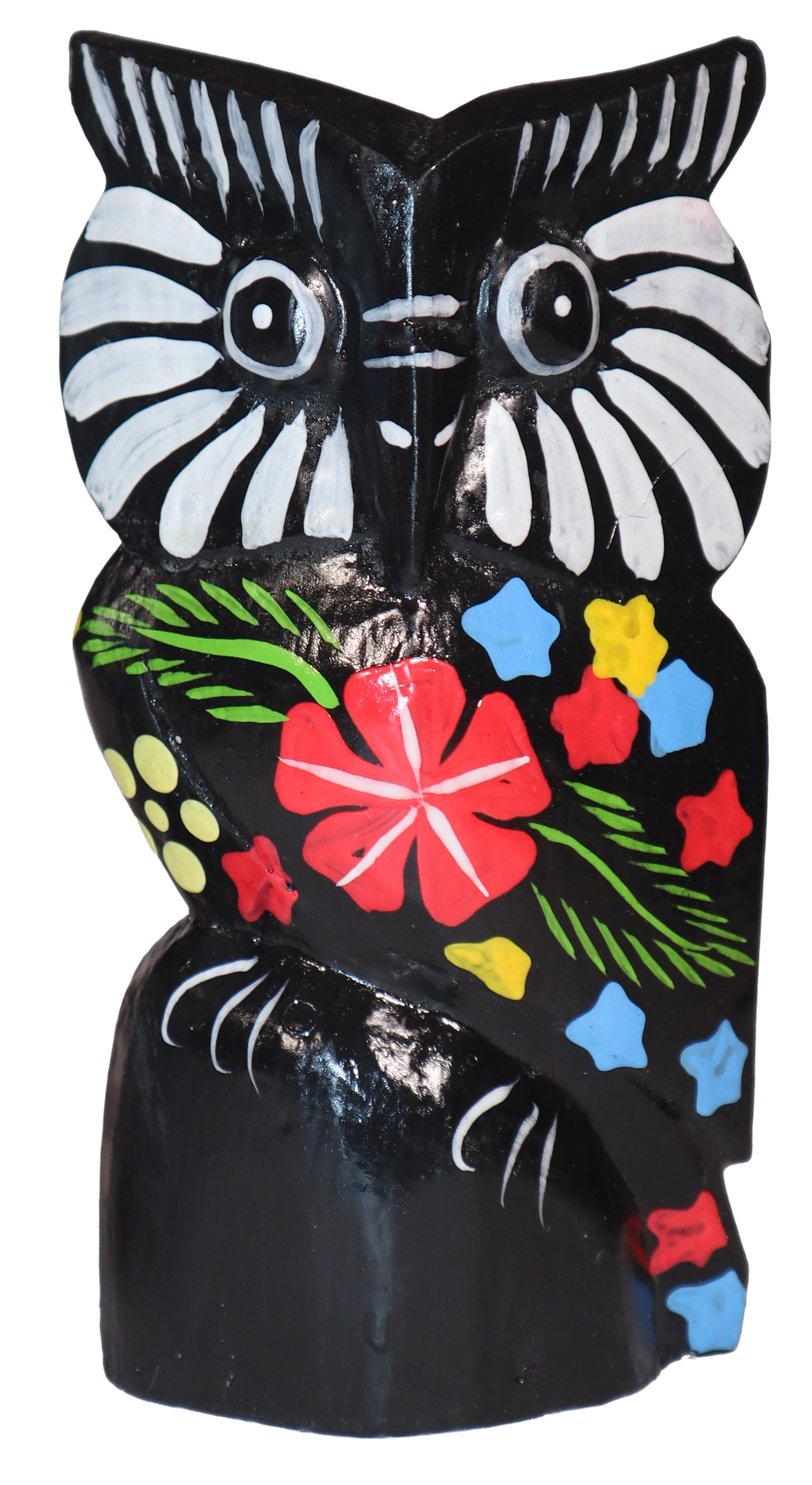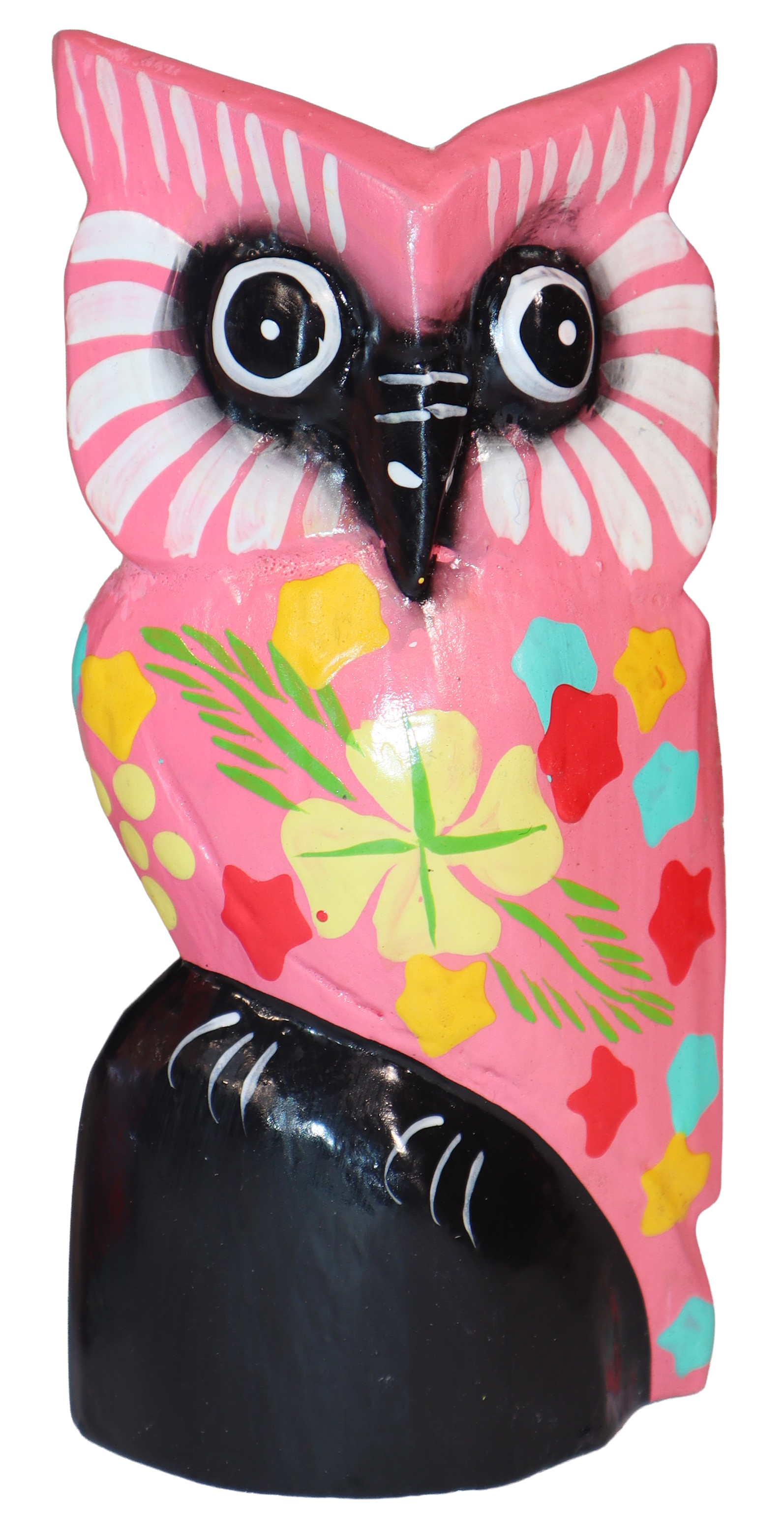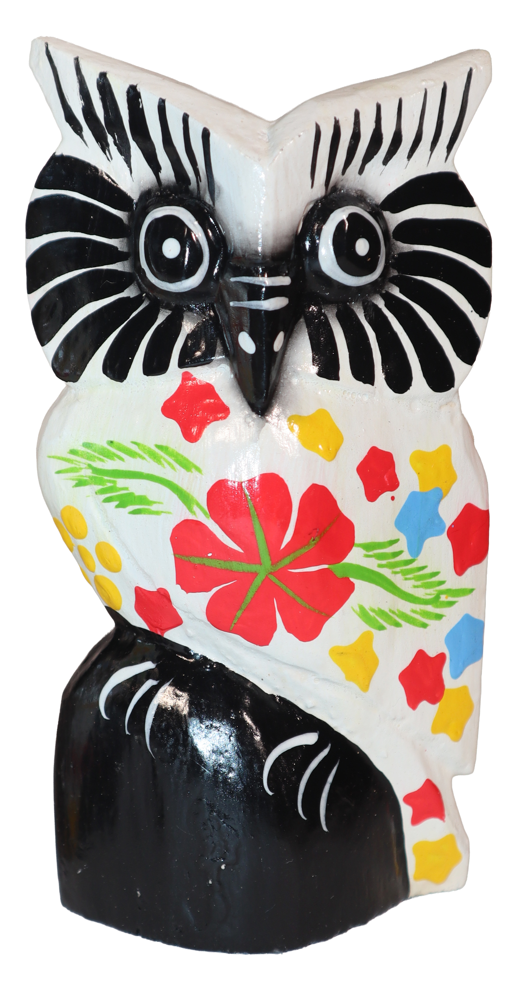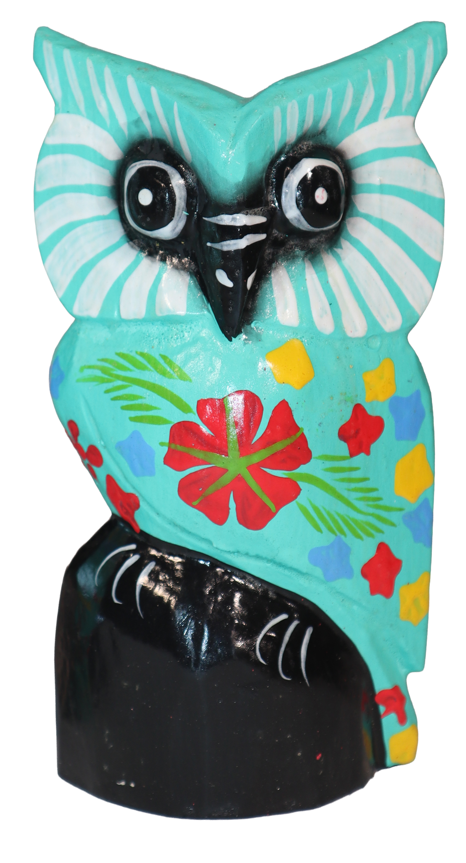 Figurka sowy wykonana z drewna, ręcznie malowana, importowana z Indonezji (Bali)..
