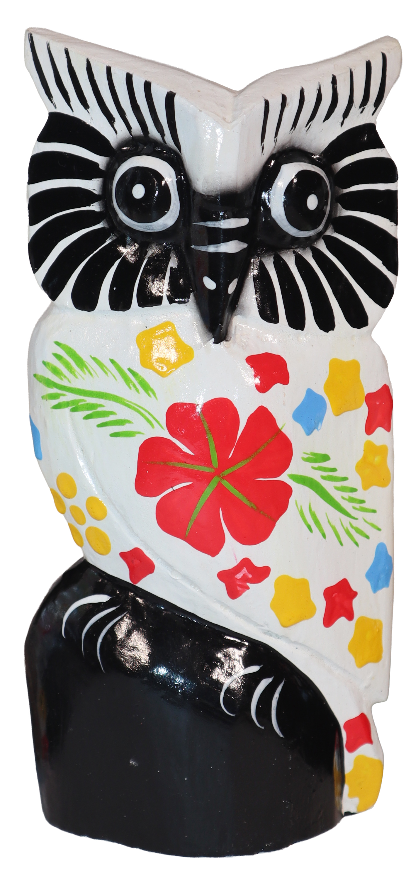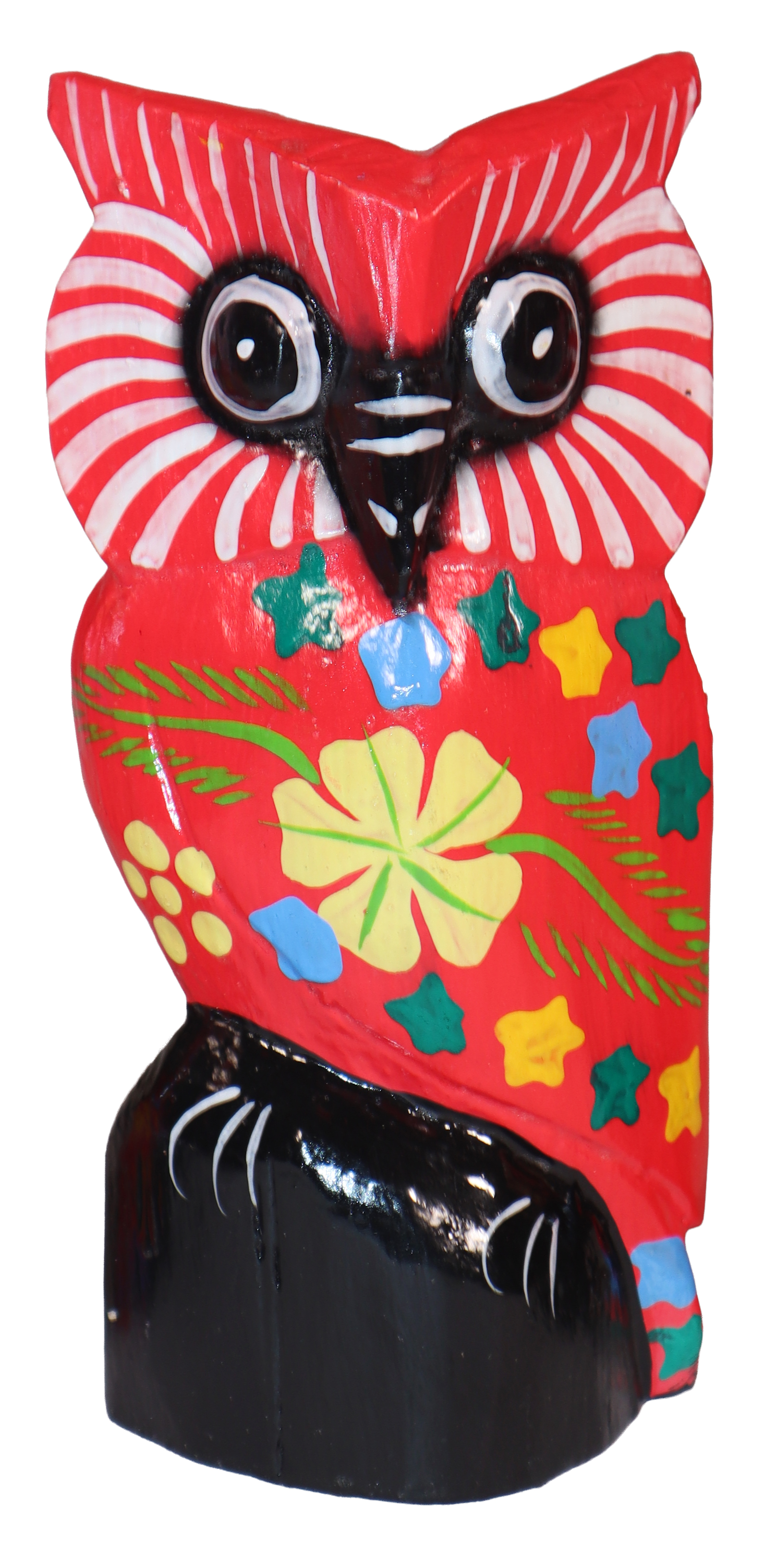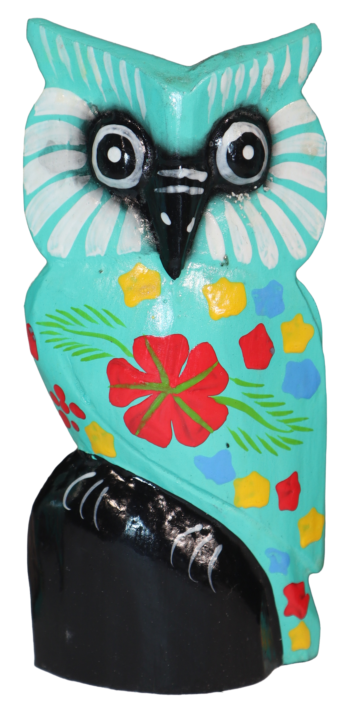 Figurka sowy wykonana z drewna, ręcznie malowana, importowana z Indonezji (Bali)..