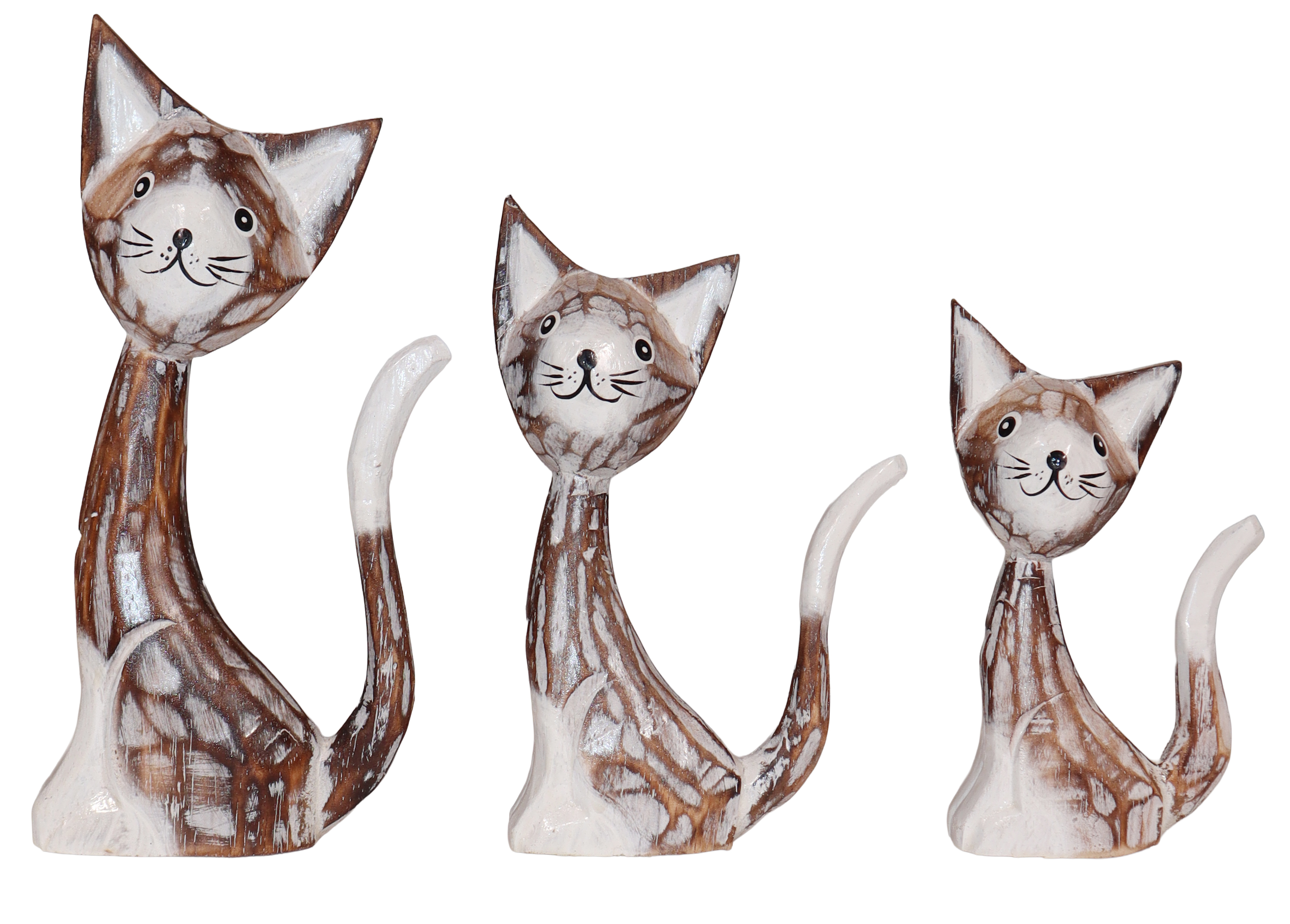 Zestaw trzech kotów z drewna - wys. 13 cm, 16 cm, 19 cm / 4 kolory