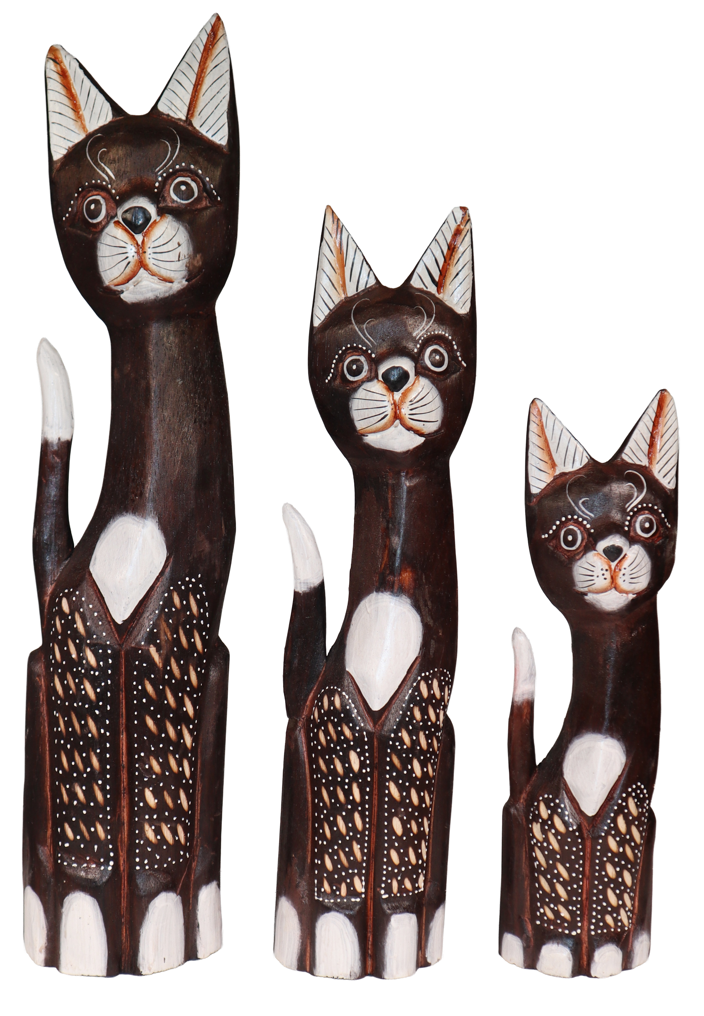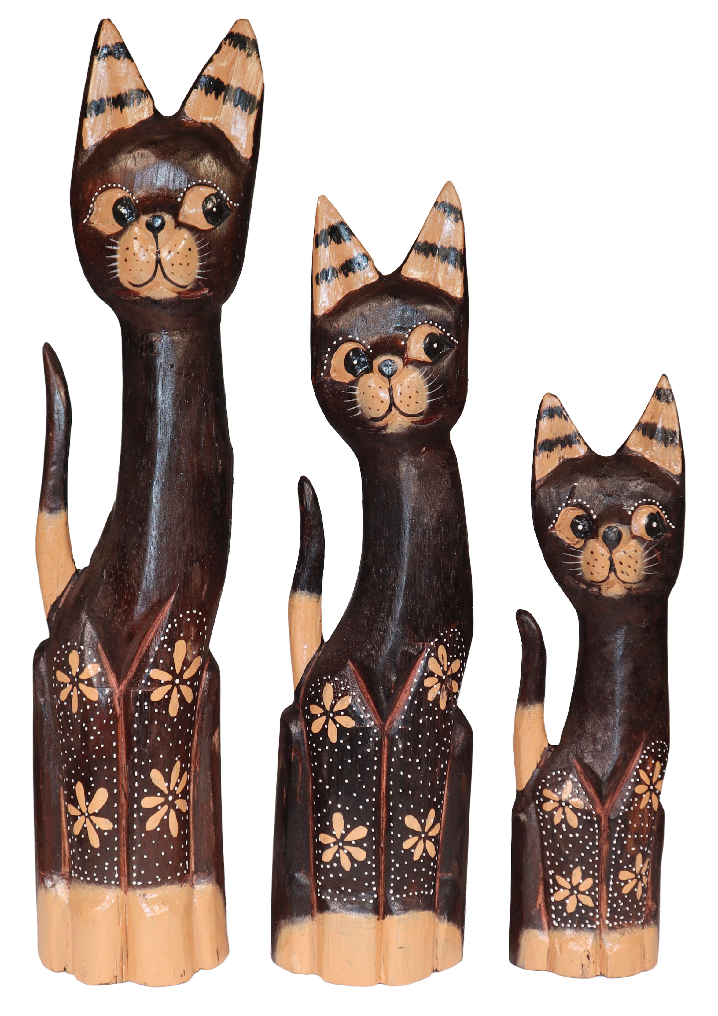 Zestaw trzech kotów z drewna - wys. 30 cm, 40 cm, 50 cm / 3 wzory