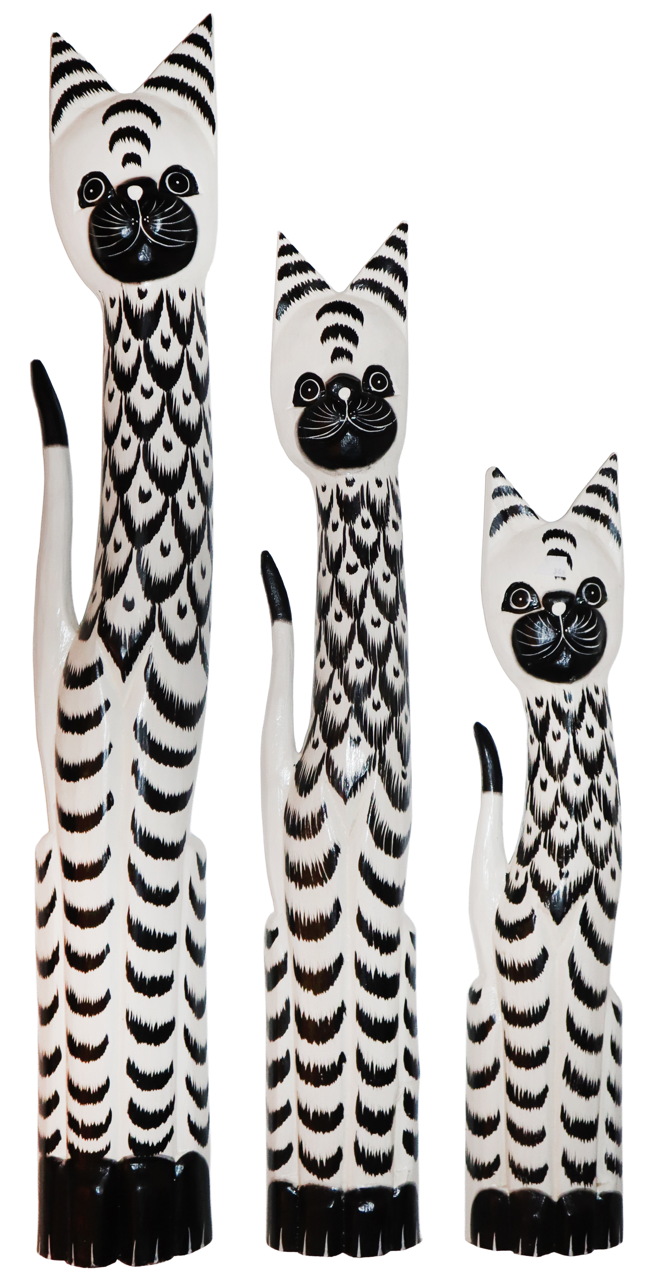 Koty wykonane z drewna, ręcznie malowane, importowane z Indonezji (Bali)