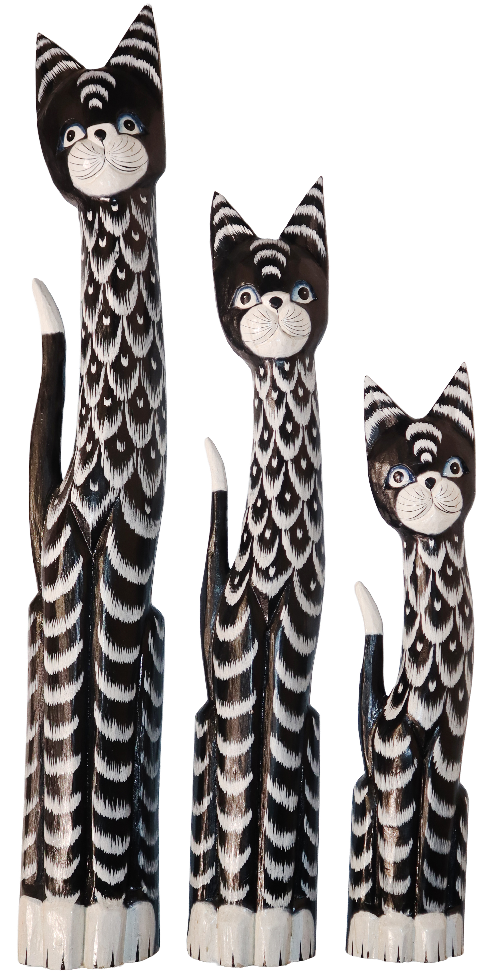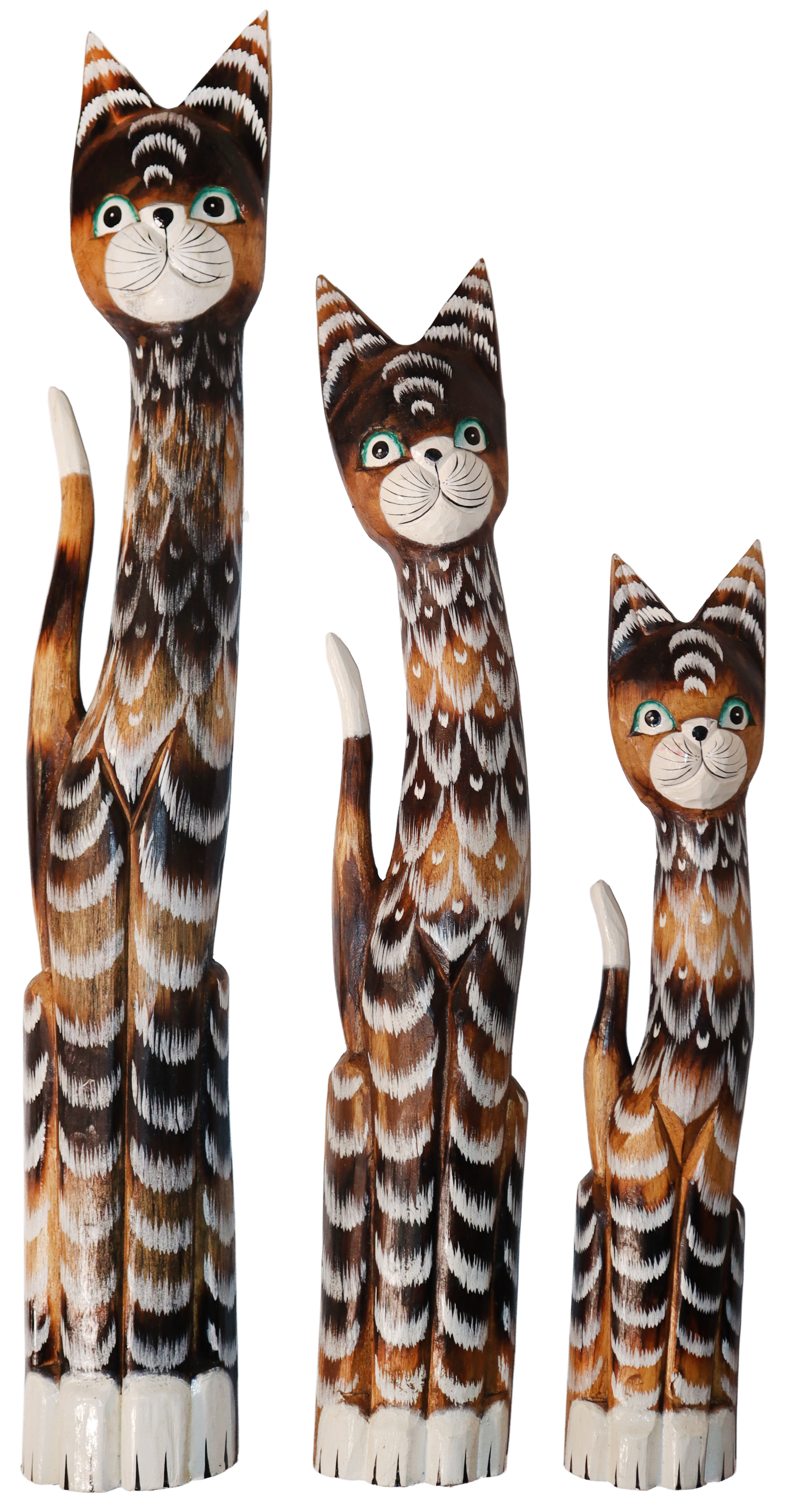 Zestaw trzech kotów z drewna - wys. 60 cm, 80 cm, 100 cm / 3 wzory