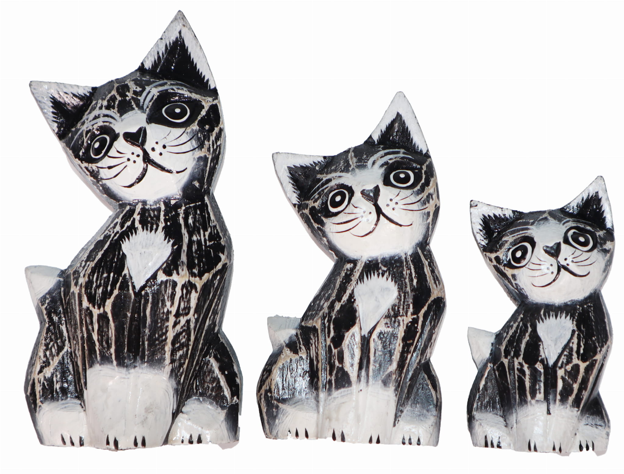 Zestaw trzech kotów z drewna - wys. 8 cm, 10 cm, 12 cm / 3 kolory