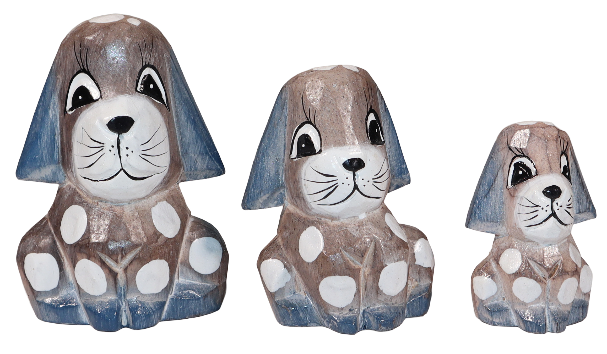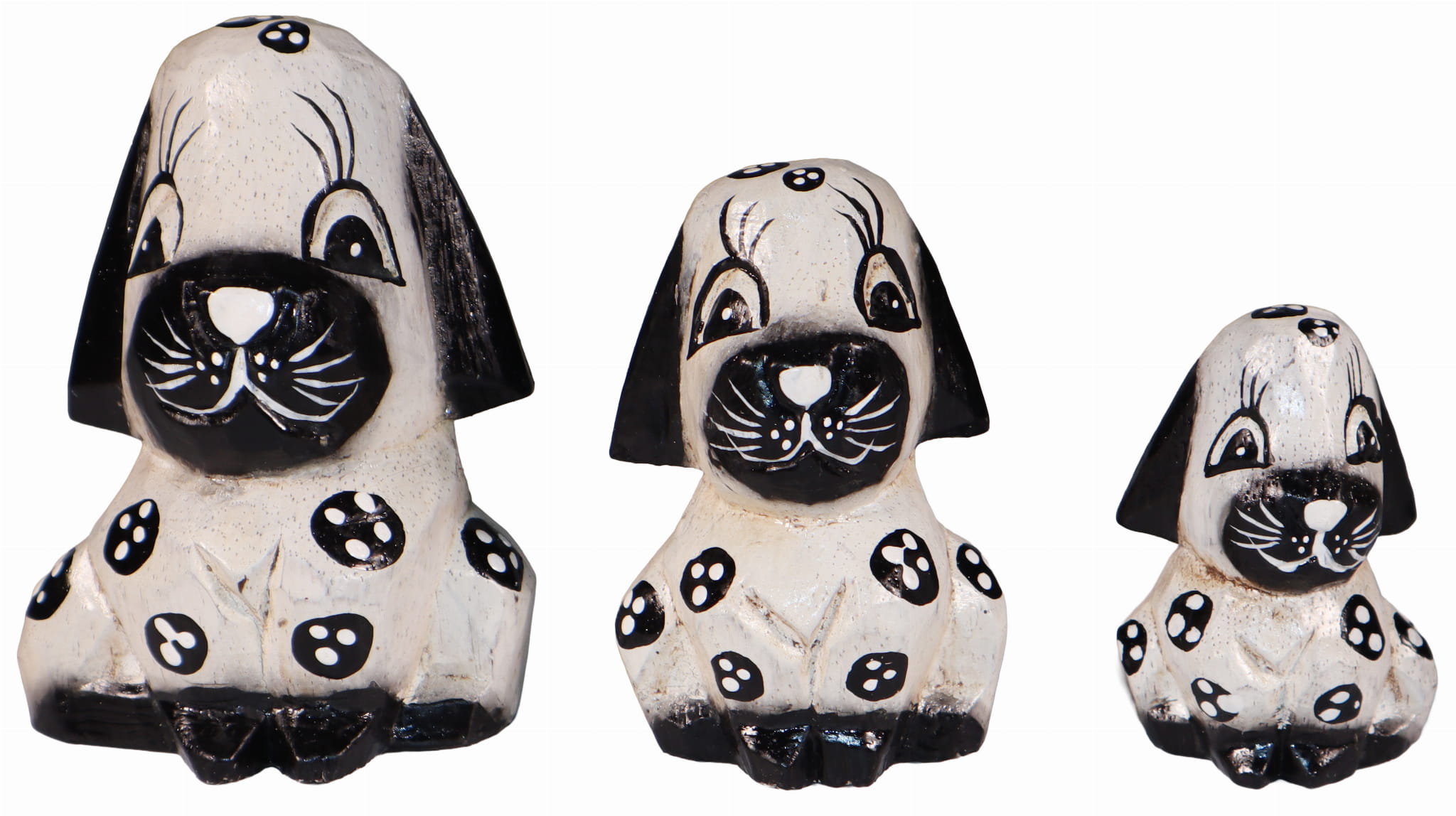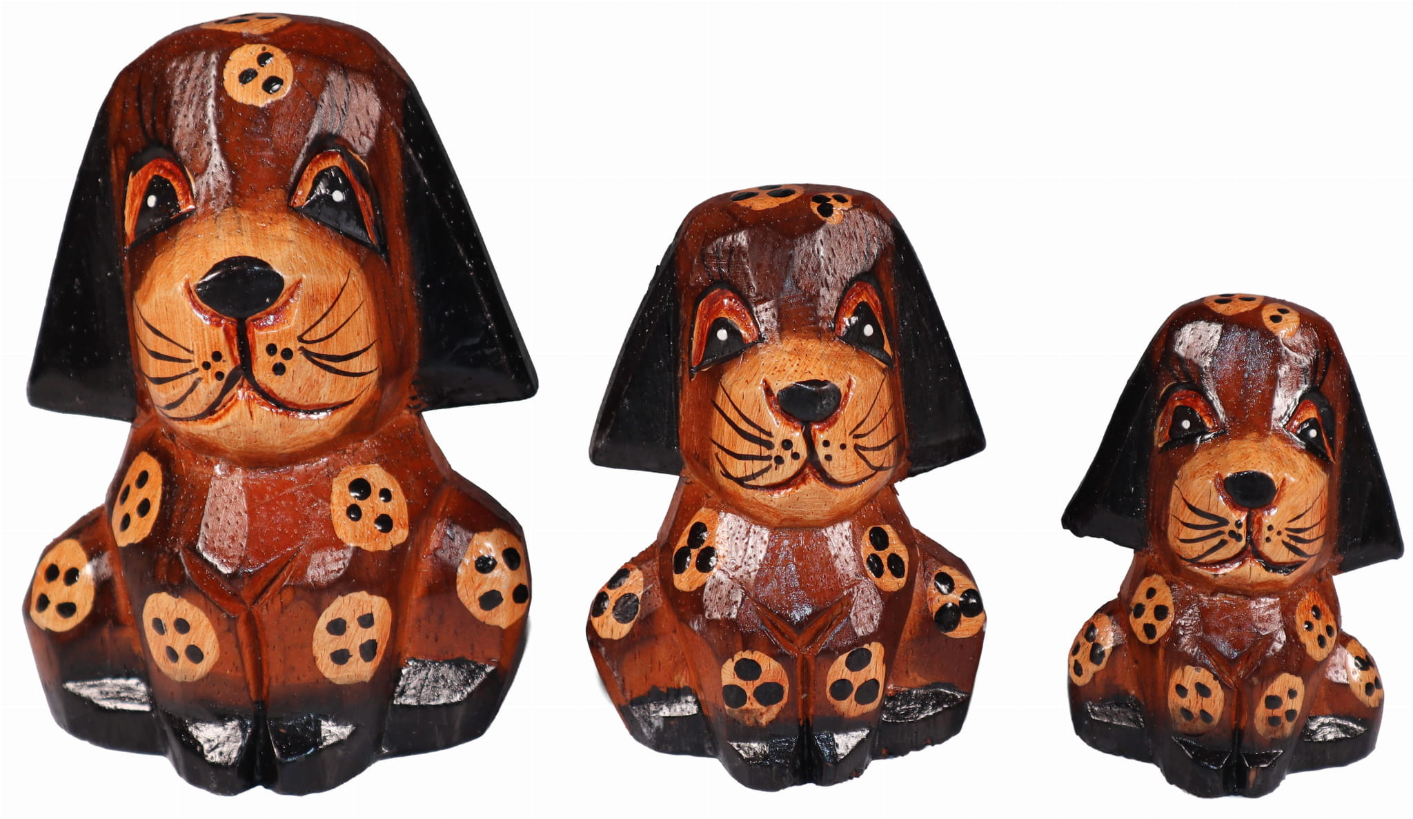 Pieski wykonane z drewna, ręcznie malowane, importowane z Indonezji (Bali)