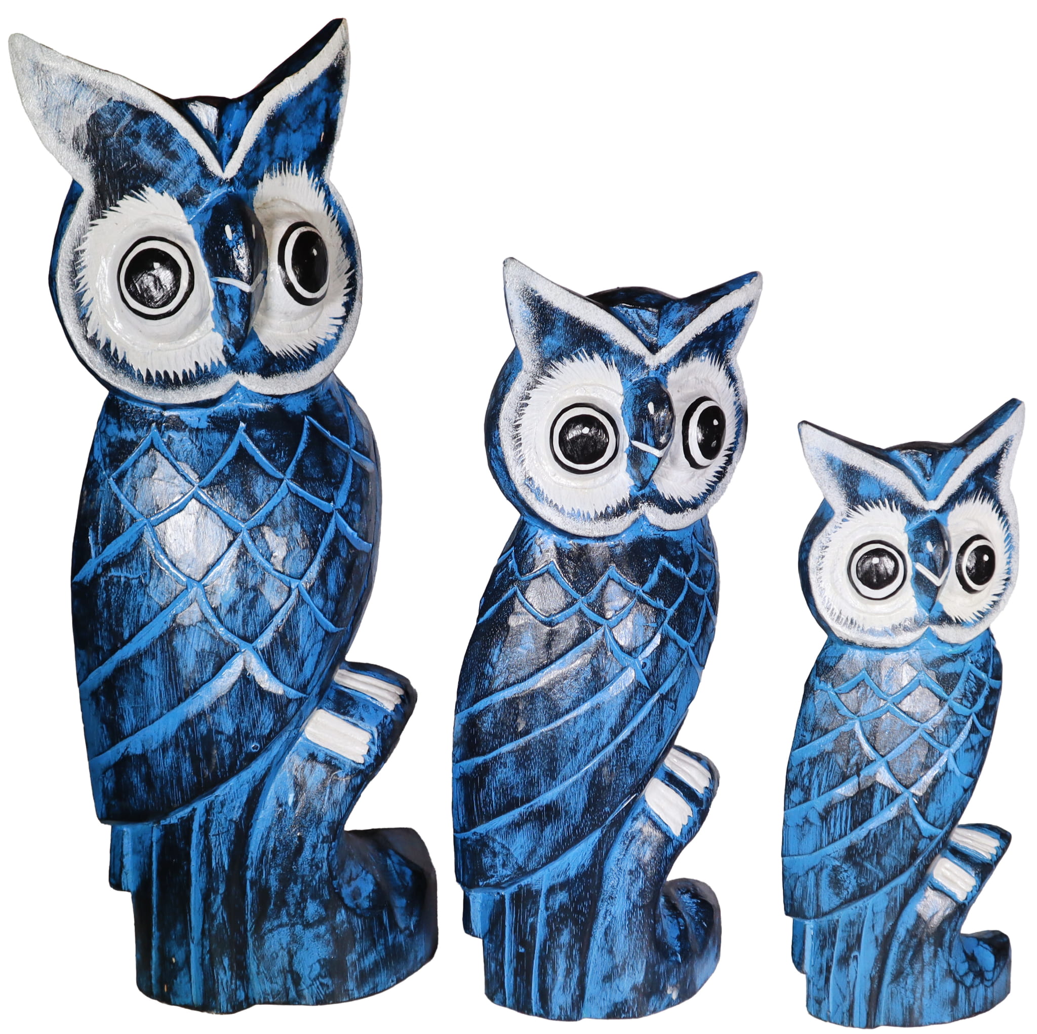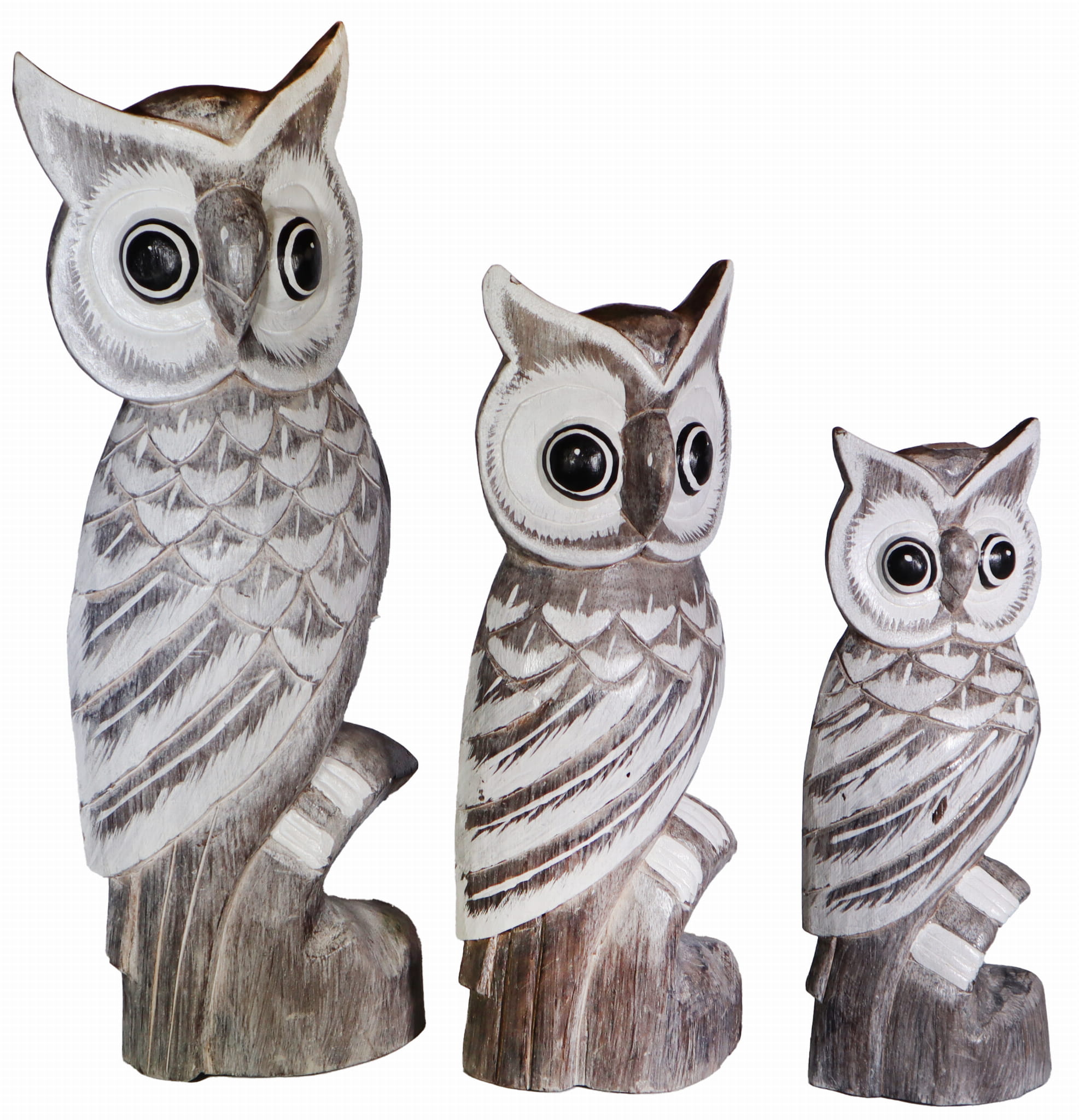 Zestaw trzech sów z drewna - wys. 30 cm, 40 cm, 50 cm / 3 kolory