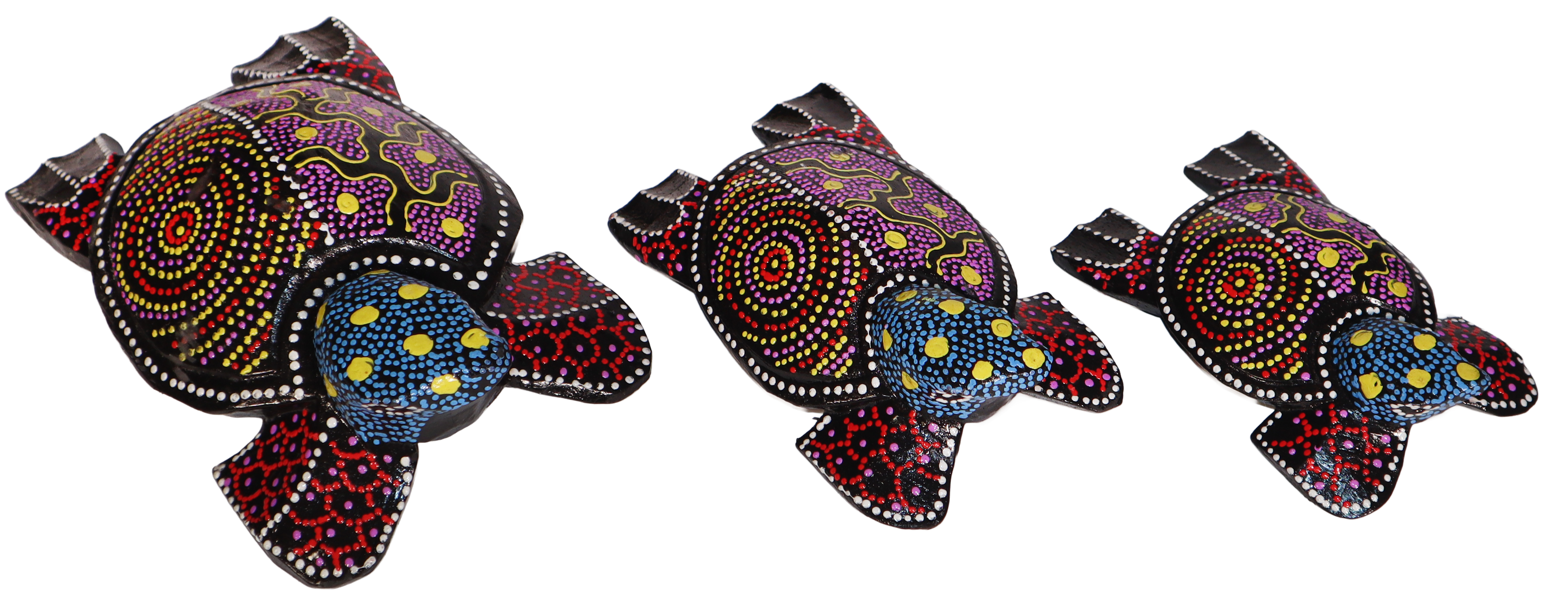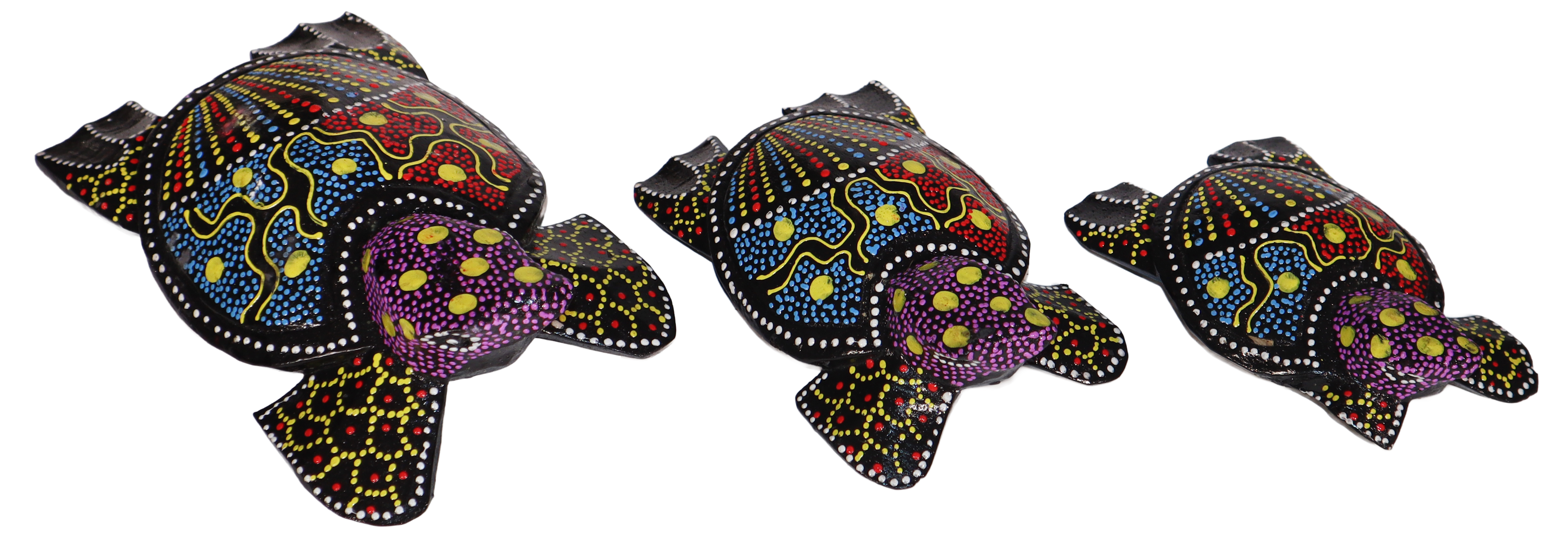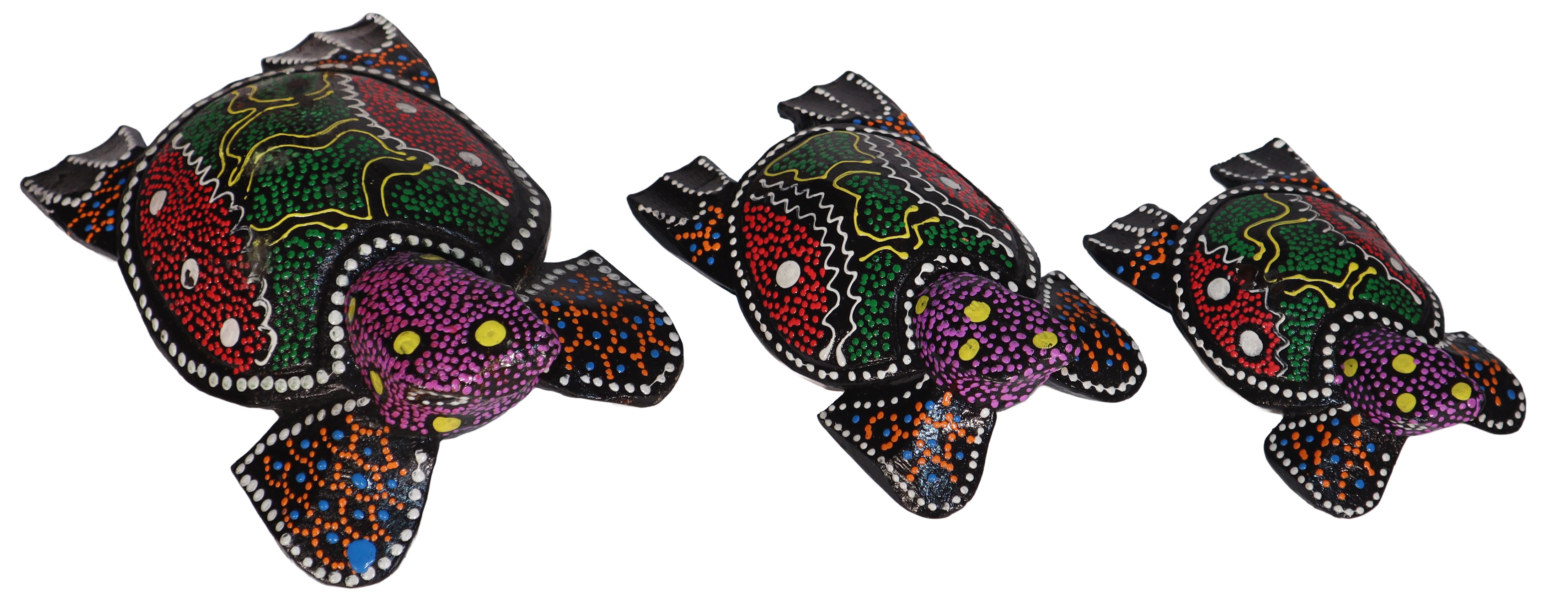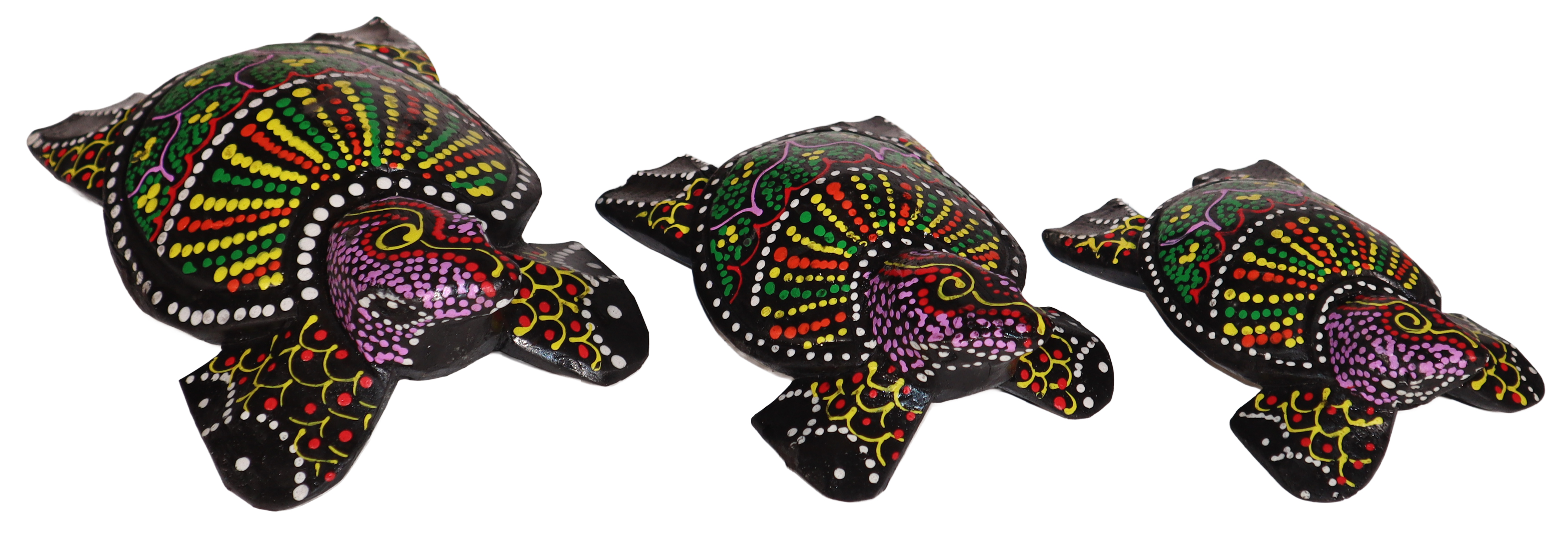 Komplet trzech żółwi wykonanych z drewna, ręcznie malowanych, import z Indonezji (Bali).